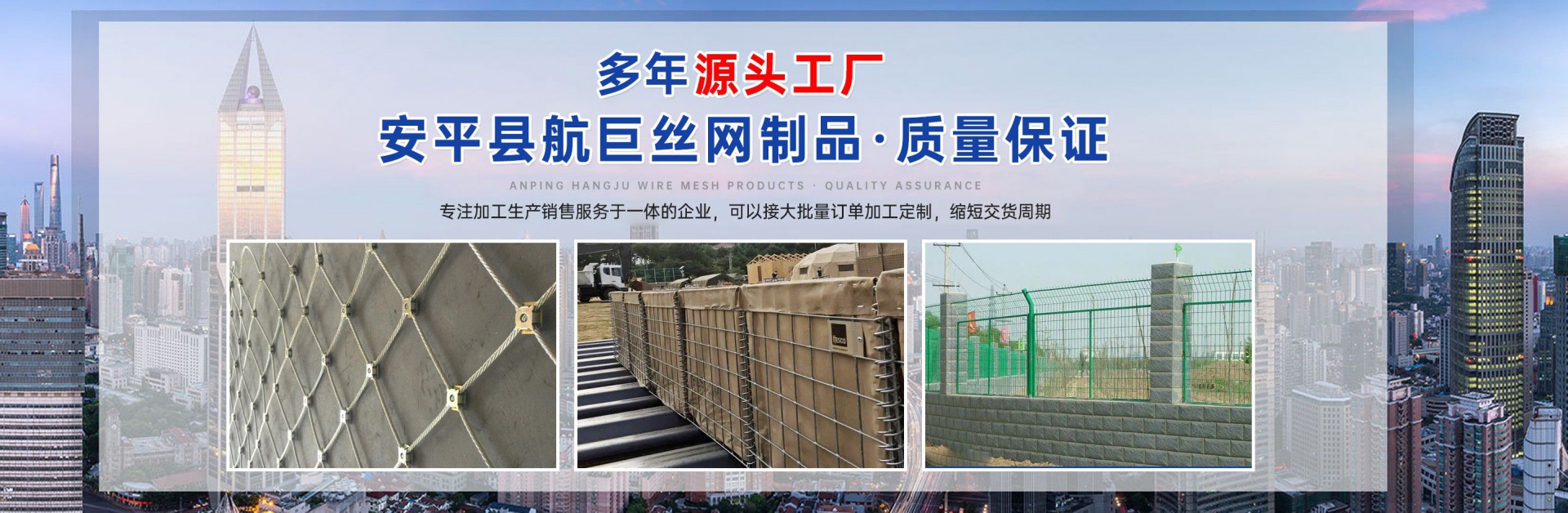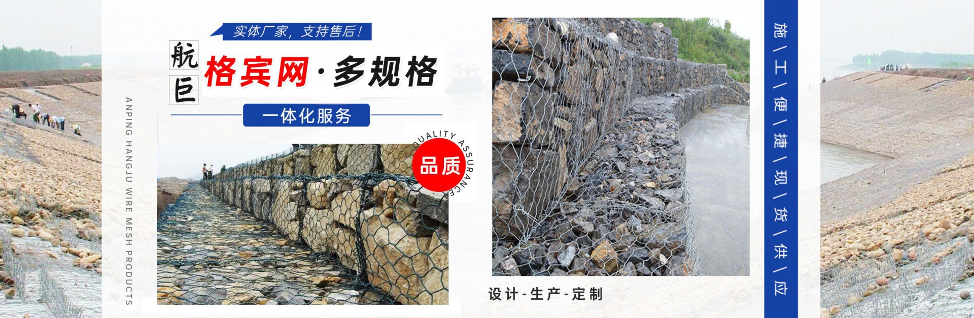 安平縣航巨絲網制品有限公司位于富有“絲網之鄉”美譽的—河北安平縣,此地是世界上最大的絲網集散基地,是華北平原上一顆璀璨的明珠。地處京、津、石三大城市中間,交通便利,是一家集生產,加工,銷售為一體的大型絲網廠家。本廠專業生產各種類型的絲網,類型齊全,主要包括:格賓石籠網,雷諾護墊,麥克排水墊,加筋麥克墊,市政護欄,防爆籠,主動防護網,被動防護網,電焊網片,鋼格柵板等產品,形成了針對邊坡支護、基坑支護、山體邊坡綠化、鐵路、高速、公路、江河、堤壩及海塘的防沖刷保護以及水庫、河流截流等不同行業、不同規模、不同應用的絲網產品和針對性解決方案,是國內最有影響力的絲網產品供應商。技術指標達到國家同類產品標準,可以接受較大的定單并保證質量和生產期限。 公司始終堅持誠信為本、質量第一、客戶至上的經營理念,本著互惠互利的精神,希望與國內外朋友共同合作,為您提供優質的產品和服務。我公司在創新管理中求發展、創新經營中求生存。把企業標準化管理、定額管理、計劃管理,公司十分注重把握市場經濟的信息脈絡,用現代網絡技術,以科研開發為原動力,與科技院校及相關專家密切合作,共同研制開發21世紀適用顧客需求的相關產品?! “财娇h航巨絲網制品一直是以“質量精良,交貨及時,價格合理,服務周到”的宗旨來為廣大客戶服務;并且本著“質...